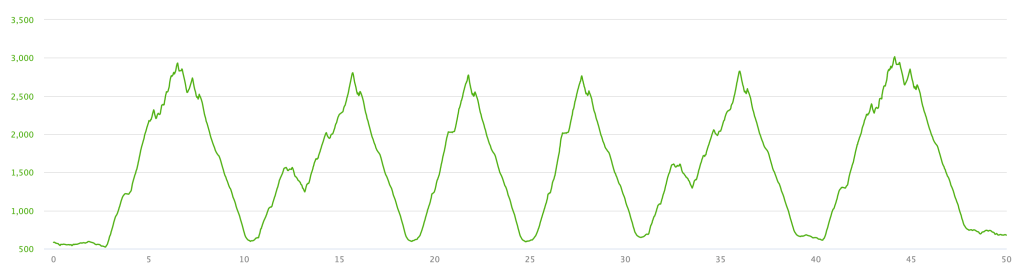 It may have been more of a shuffle, but I was able to keep moving at a reasonable pace on the flat segment at the start of the final loop. The first mile clocked in at 12 min, 2 minutes slower than at the start of the day, but at mile 40 for the day, I’d take it.